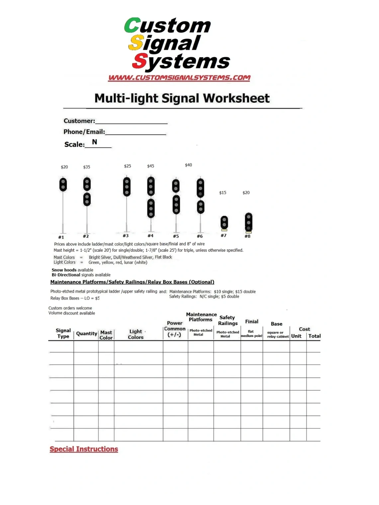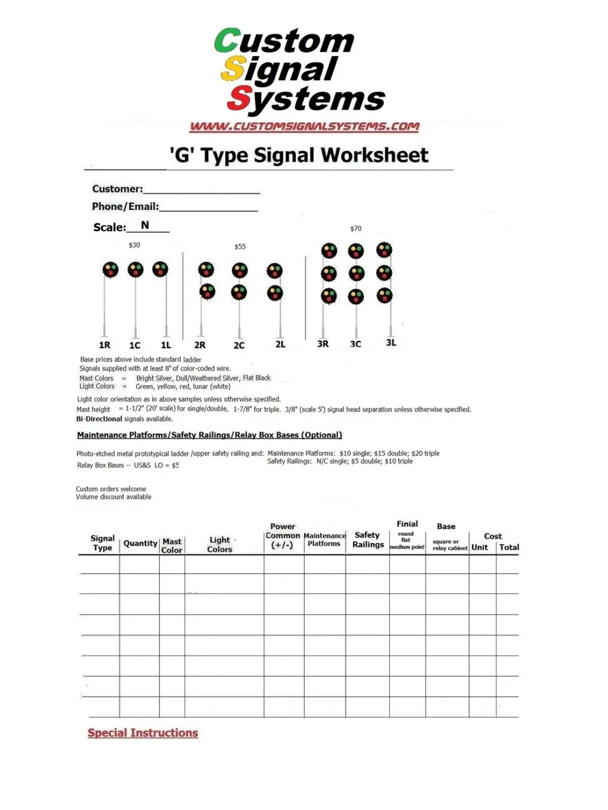 ----------------------------------------------------------------------------------------------------------------------- *Searchlight and G Type Signals: Single - $30 Double - $55 Triple - $70