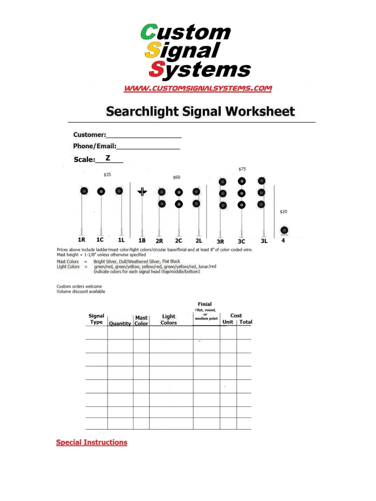 ----------------------------------------------------------------------------------------------------------------------- *Searchlight and Signals: Single - $30 Double - $55 Triple - $70